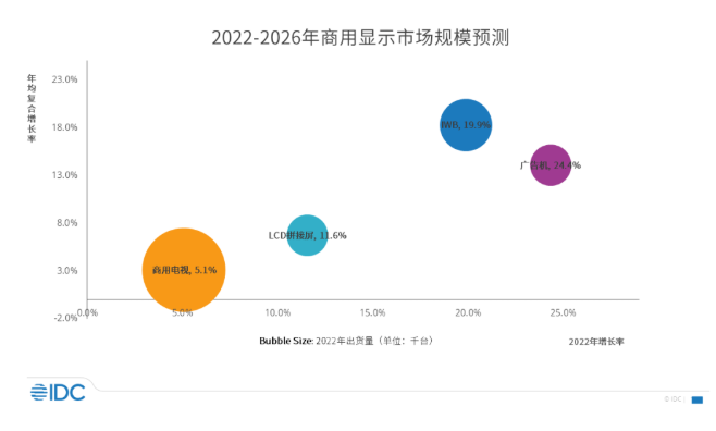 IDC预计,2022年中国商用显示市场同比增长11%,交互式电子白板将持续领跑商显市场